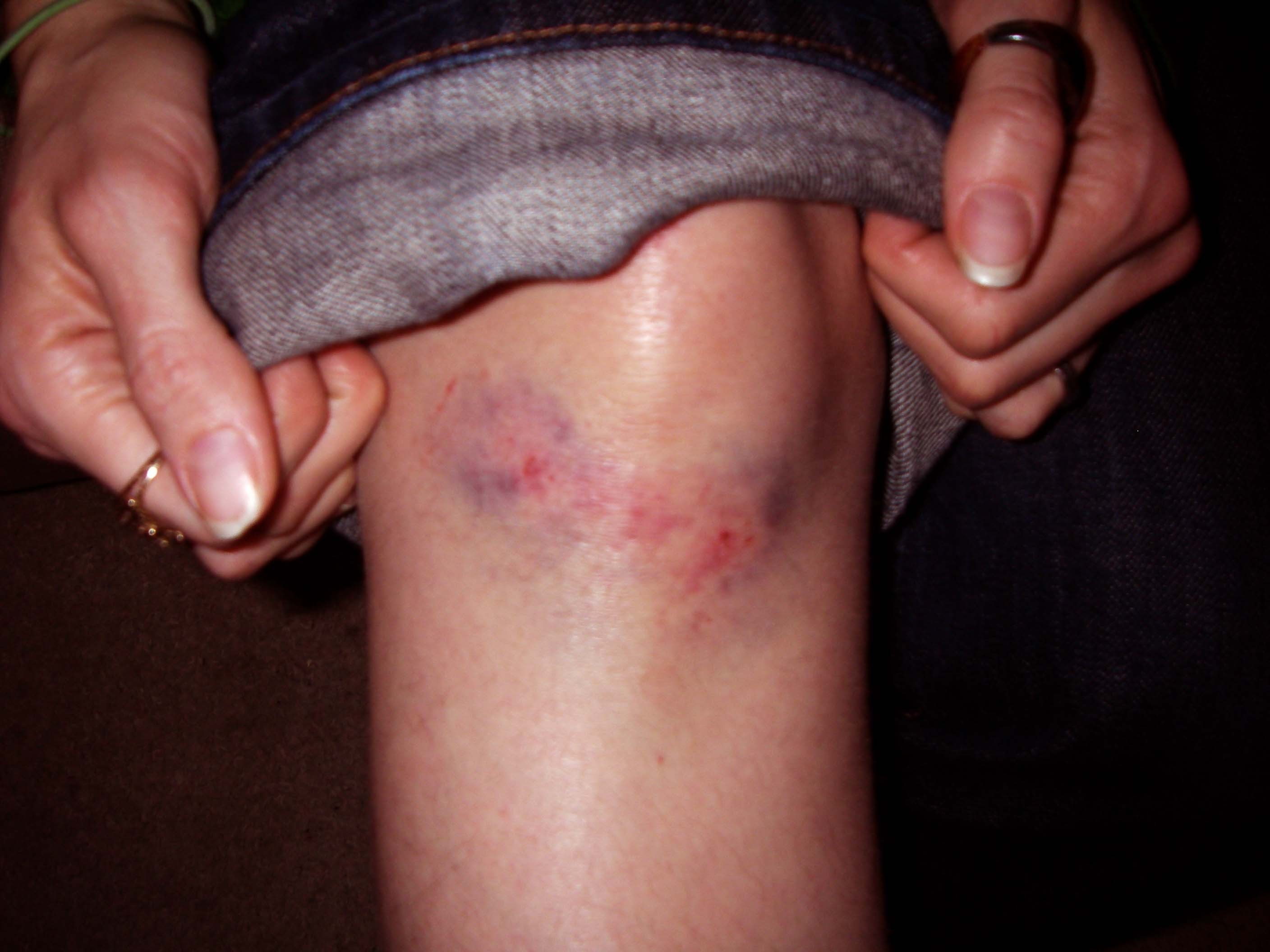 Did you find it hard to photograph you knee? Or did you do it in a mirror? I had the toughest time because I couldn't look at the back of my camera where the LCD is while it was aimed at my knee! And then there was the whole lighting issue (too close with the flash and it blew out the entire image... etc.).