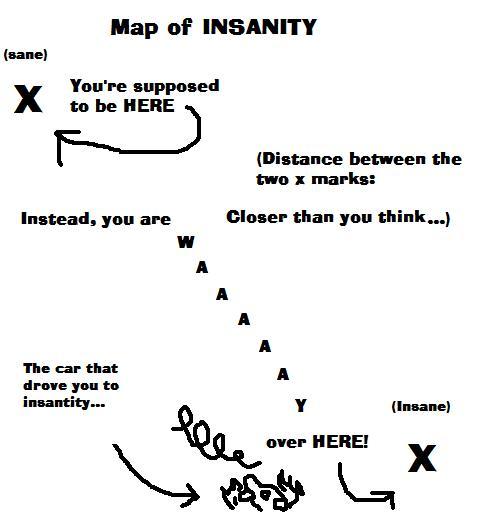 Since half of my family is crazy...I thought I'd make a "Map of Insanity." Whether you were driven there or on the brink of it to begin with, if you're insane this map might help you figure out where you are in relation to where you should be!
