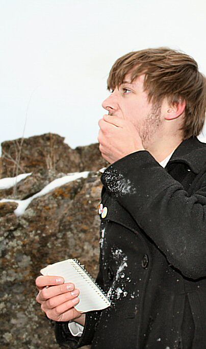 The first hill he walked up was capped with black rock, jagged and sundered. There was a nest inside one of the clefts scattered either with branches from the white trees or bones.