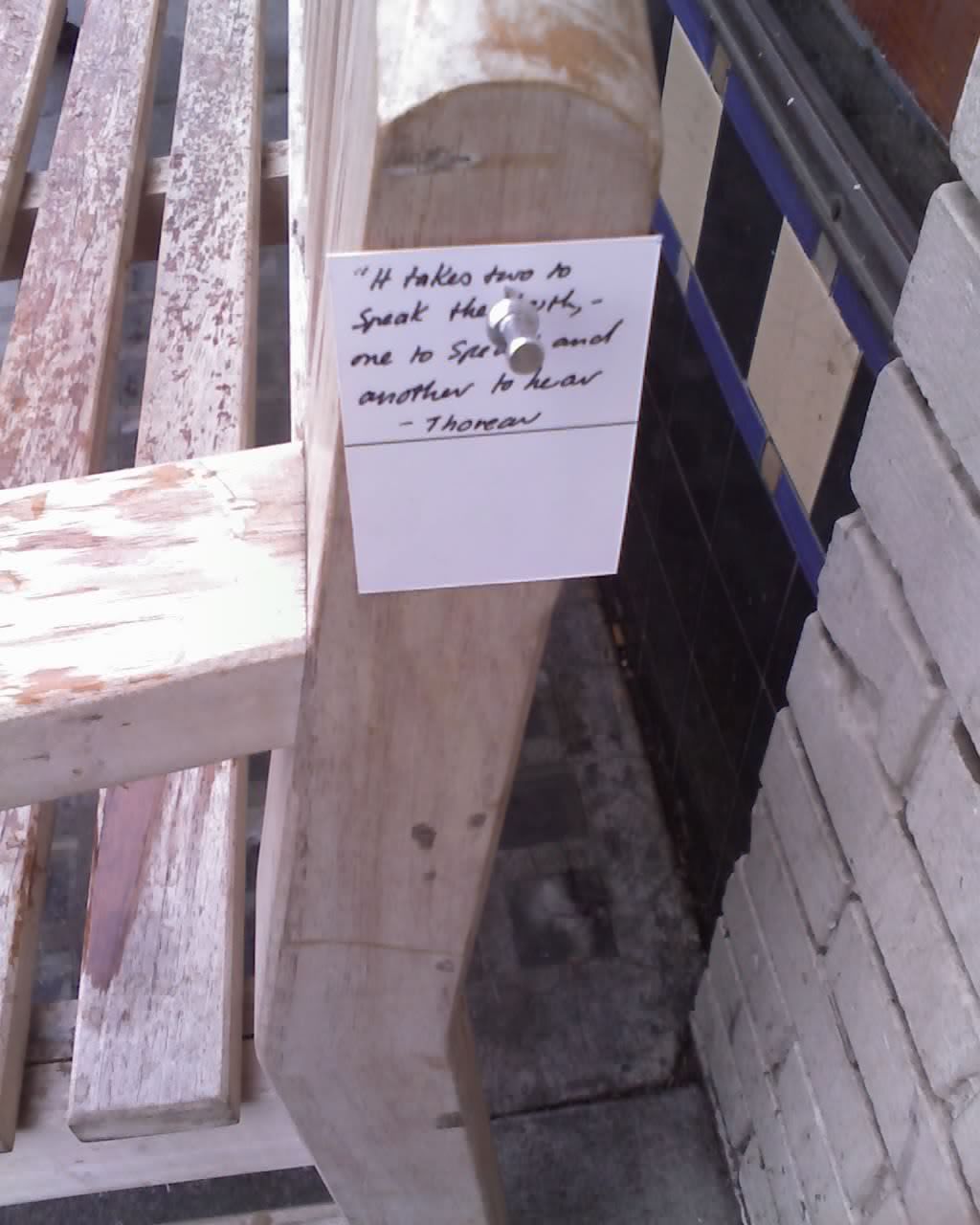 It's opposite all this sign board that promotes everything from casual sex to yoga. So I thought a quote about sincere friendship would be appropriate.