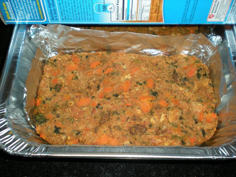 We left the trays to cool and dry under cereal boxes. This one was the vegan meal, and the first we tried.