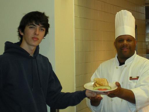 After I had eaten a grilled-cheese sandwich, I realized I had eaten it so voraciously that I forgot to take a picture. I went over to the serving station to take a picture of another one, and the Chef, seeing my camera, whisked it into the back to make it more presentable.