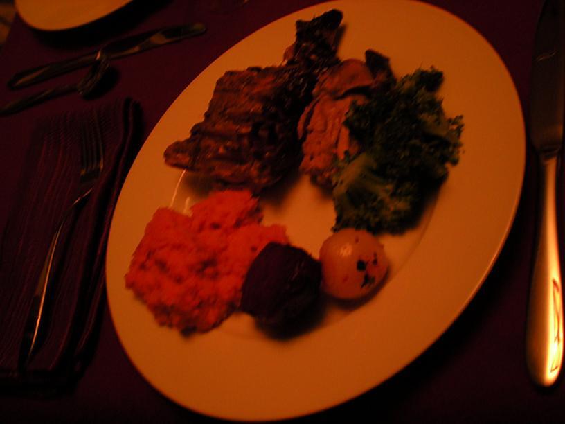 Also, it seemed worth mentioning the incredibly marvelous meal provided for me earlier this year by Peter Garnett on his birthday. Smoked turkey, pearl onions with beats, the lightest and richest yams I have ever tasted, and broccoli no carnivore could turn their nose up at. This was the meal that got me started learning to take photographs that better highlight the qualities of food.