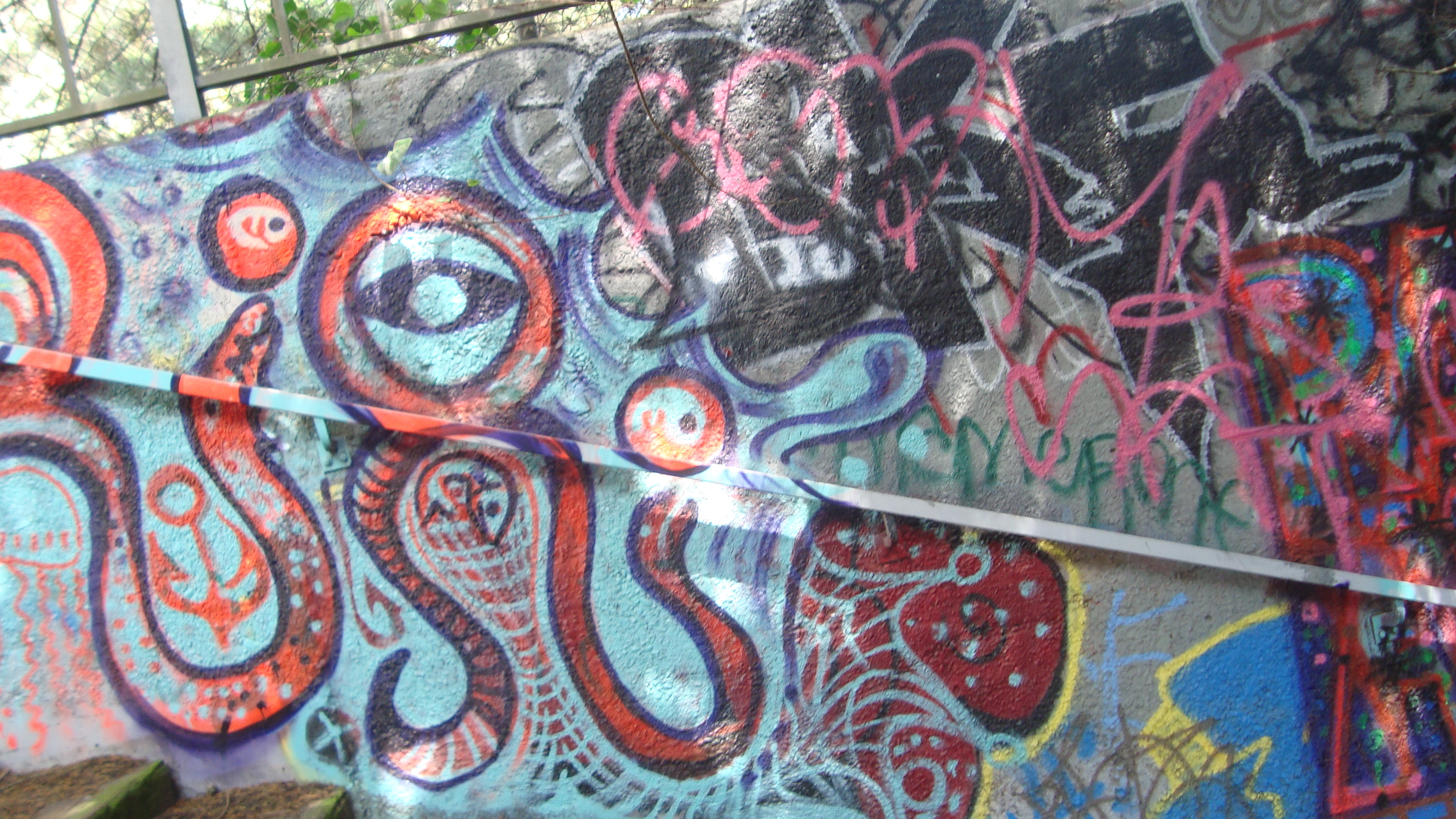 I love graff of almost all sorts, even the noodly scribble words can accrete to make a texture that is all human, all city. I think graffiti is an natural mode of expression for human beings and that it reflects the community in a given place so well. win!