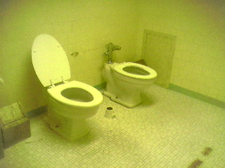 This is a photograph of the women's bathroom at the Monte Vista Hotel's before they put up shower curtains and new dividers. I met many girls while peeing there, and miss it as though it were family.