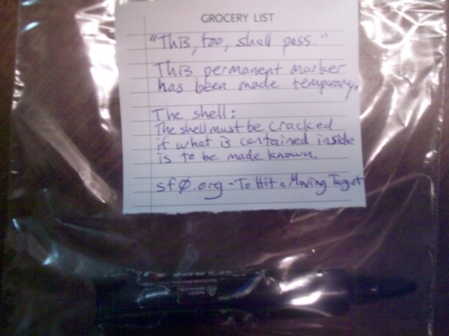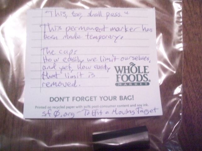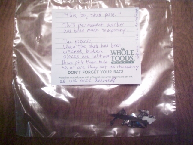text: "This, too shall pass." This permanent marker has been made temporary.