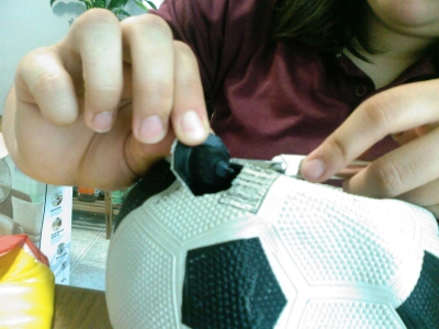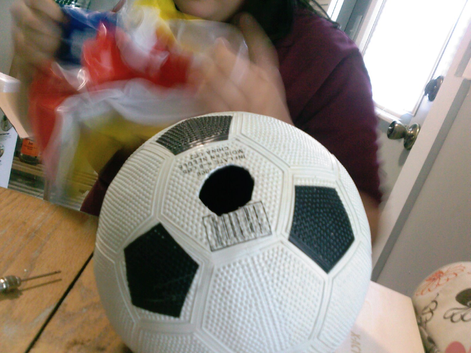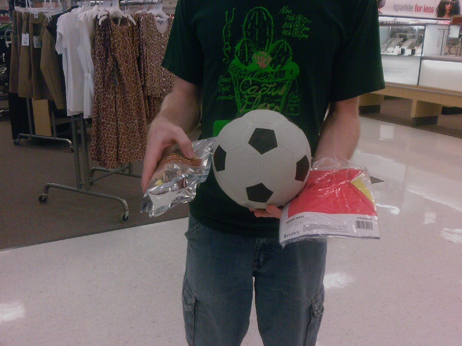 Gathering supplies involved a trip to the store. After much deliberation, we purchased a child's soccer ball, a beach ball... and some trail mix.