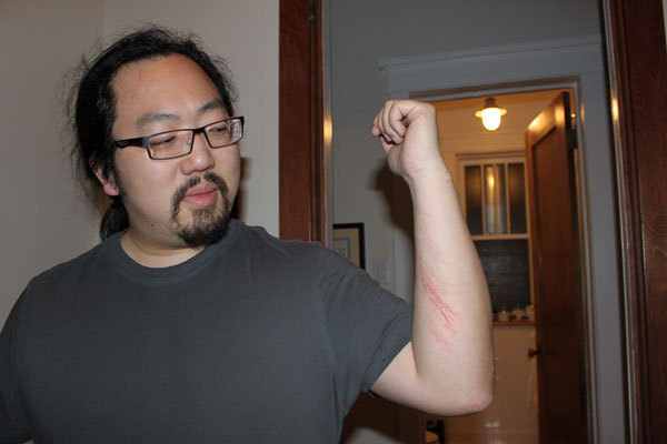 Lovely scrapes on both arms, due to the cemetery sneak.