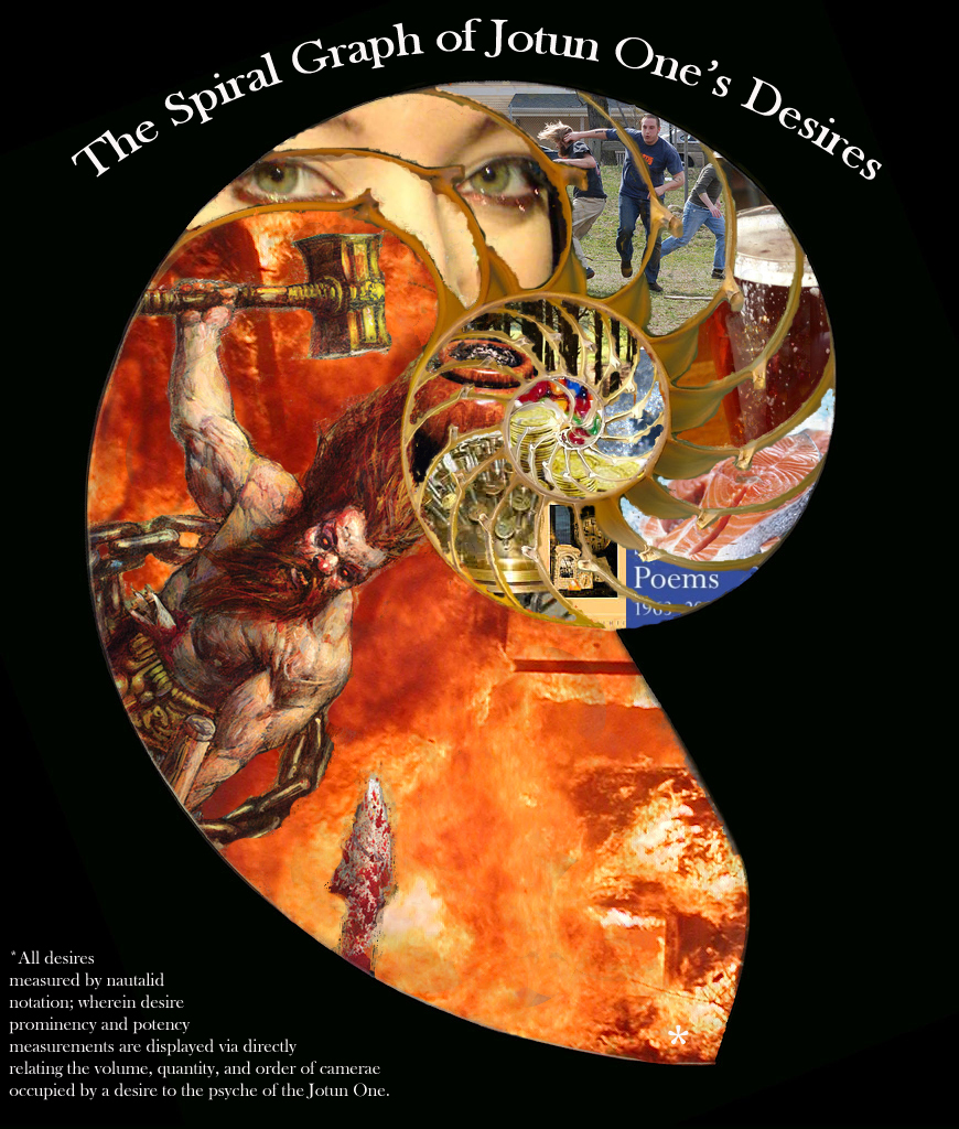 As for my actual desires, the measurement has occurred as annotated on the main graph: Nautalid Notation. This means desires are measured by their placement within the Nautilus shell I digitally hollowed out. What matters is the desire's order in relation to the last lived in space by the former Nautilus occupant, sheer volume of camerae chambers that desire takes up, and the number of camerae as well.