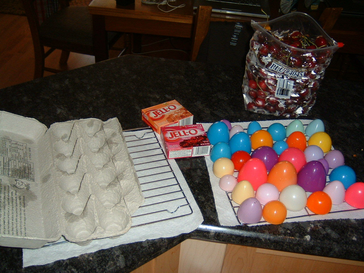 The easter eggs came from Dela Dejavoo in her task "The Treasure Hunters". With all my hardware ready to go, I set to work making Jello-shots. Here are the results in all their glory.
