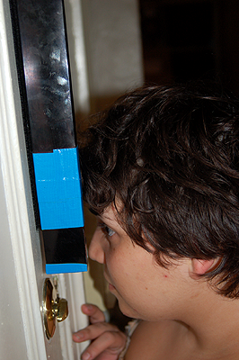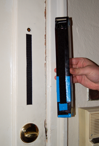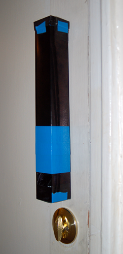 Initially I thought of using wood or small, threaded pvc pipes, and also add a hinge towards the middle so that taller apartment mates could still peek through. Recently, I acquired a good substitute material for the case.