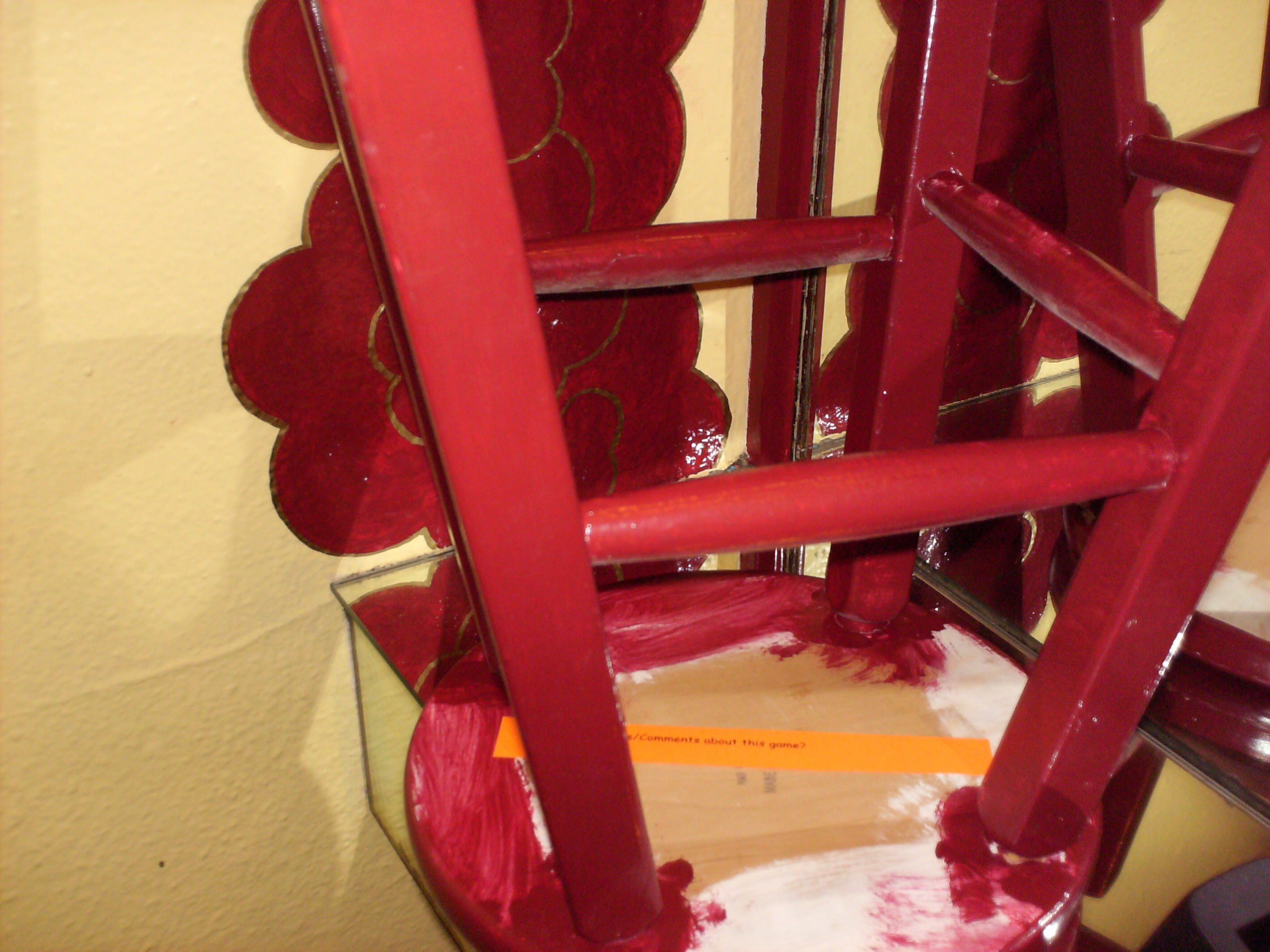 Under a stool in the ladies room. There's a huge makeup mirror with stools. I should have taken a wider picture, hindsight is 20/20.