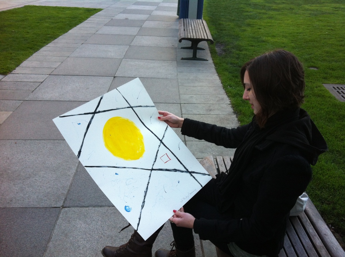 download file She wanted to talk about her painting, so I tried to explain what had gone into my creative process -- some sense of energy, the relationship between her and her surroundings, motion, life force, all that kind of thing. Ultimately, though, art is a dialogue with the viewer, and whatever she gets out of it is more valid than what I tried to put into it. |