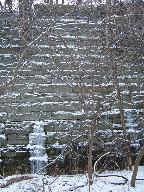 download file This is one of the walls of the bike trail. It was leaking watch, which froze and created an amazing, cave-like formation. The bike trail used to be an old railroad line that shipped tons of stuff from Milwaukee, including missiles from an old Ford plant just up the path. |