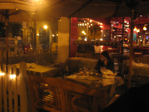 Sitting on the far end of the outdoor seating area, I didn't realize that she was alone and on the phone. Wacky.