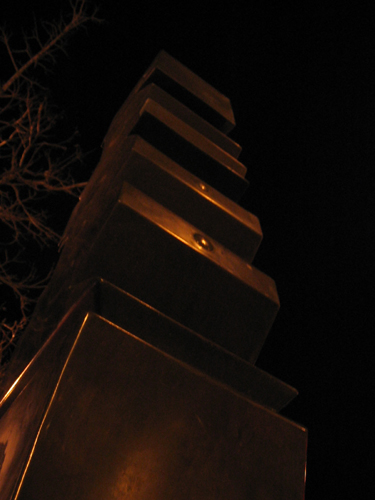 There are a few of these of varying heights out directly on the corner near Grape Escape. I'd never touched them before, and was supprised at the metallic sound they made when struck.