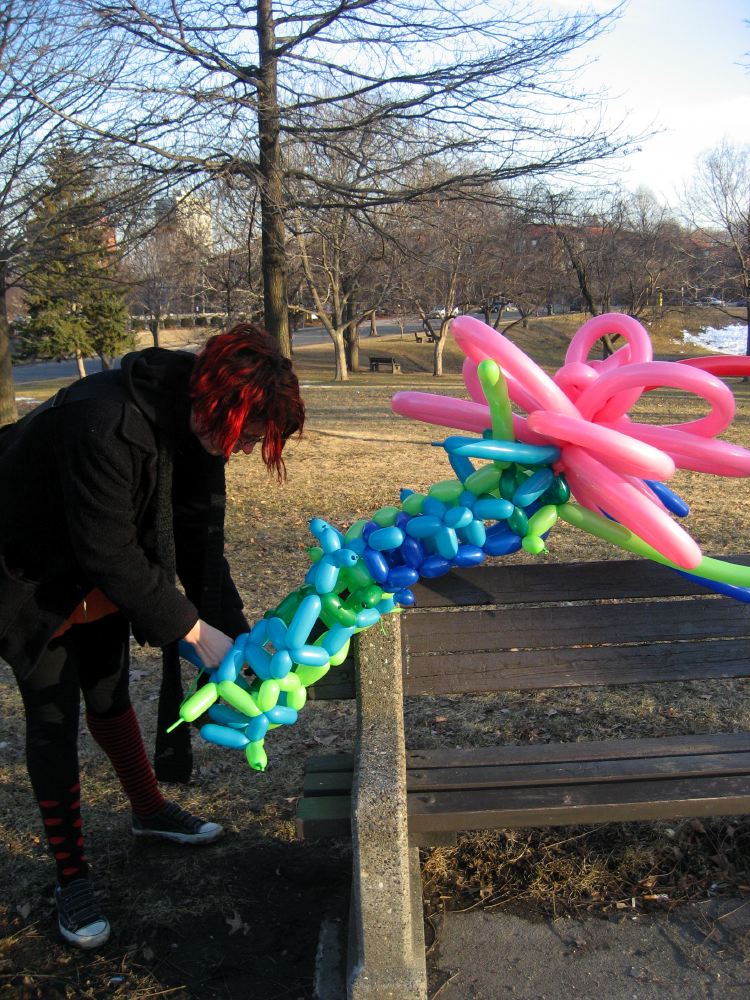 star5 tying the balloon flower to the bench