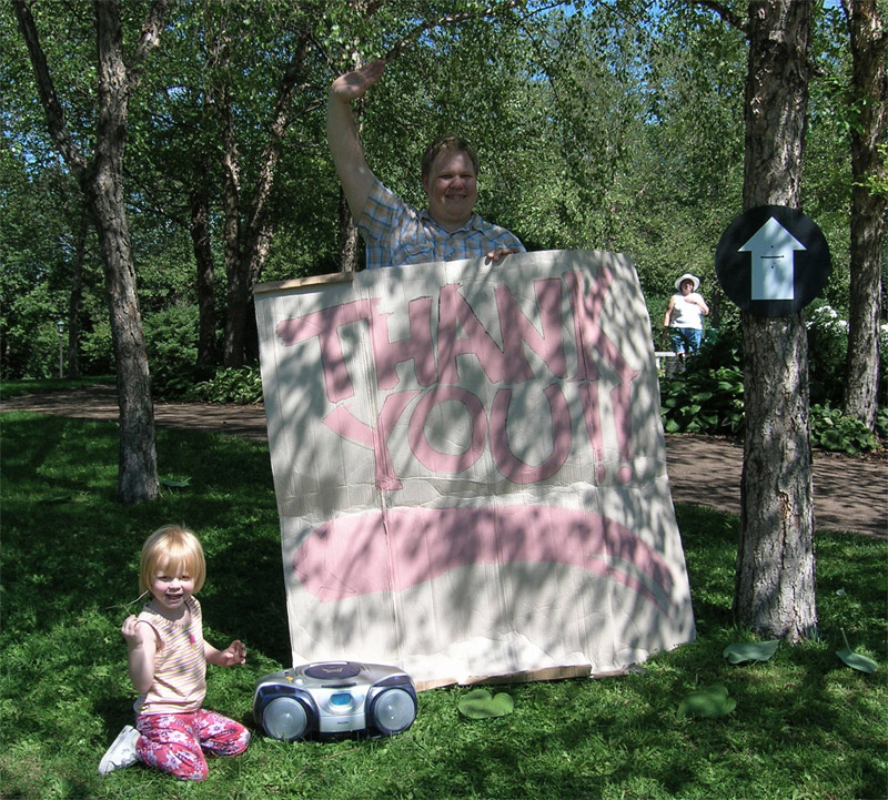The candidate and Eleanor the Most shown supporting thousands of 3Day walkers with hand-made sign and uplifting music.