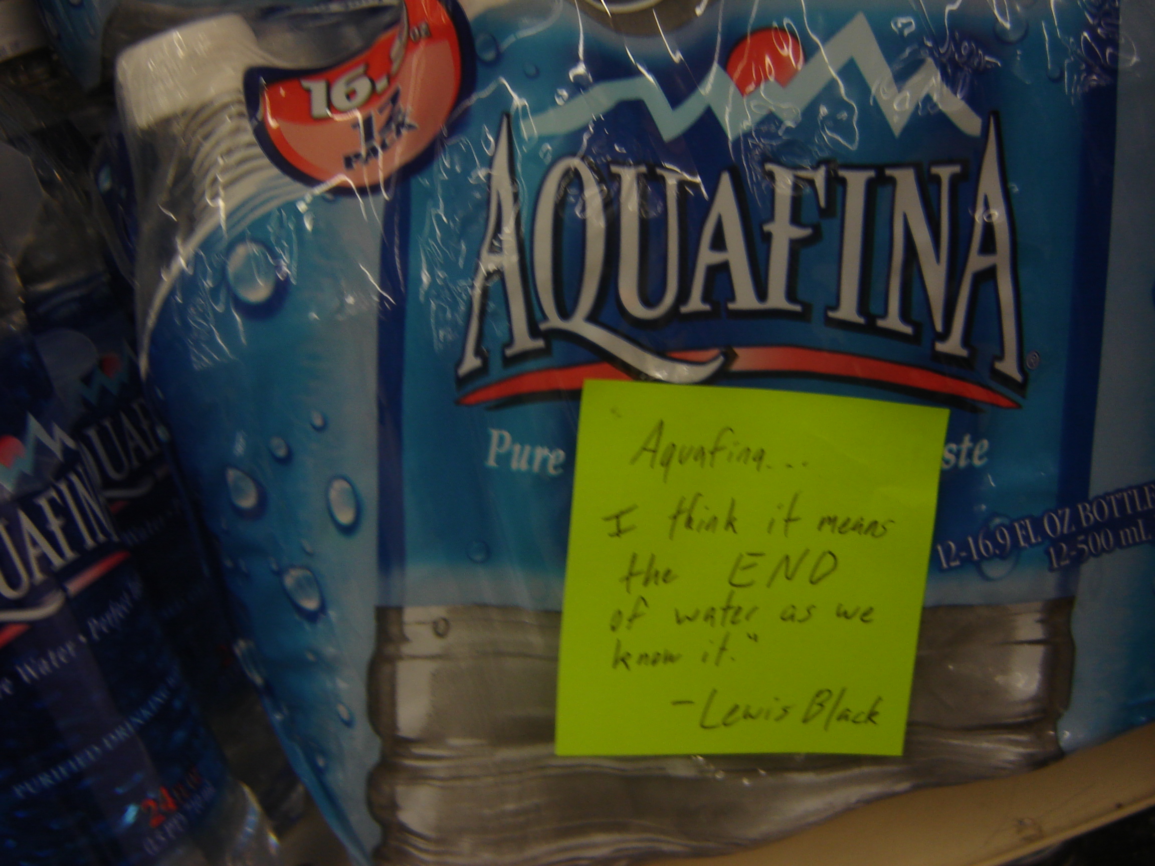 "Aquafina... I think it means the END of water as we know it." -Lewis Black
