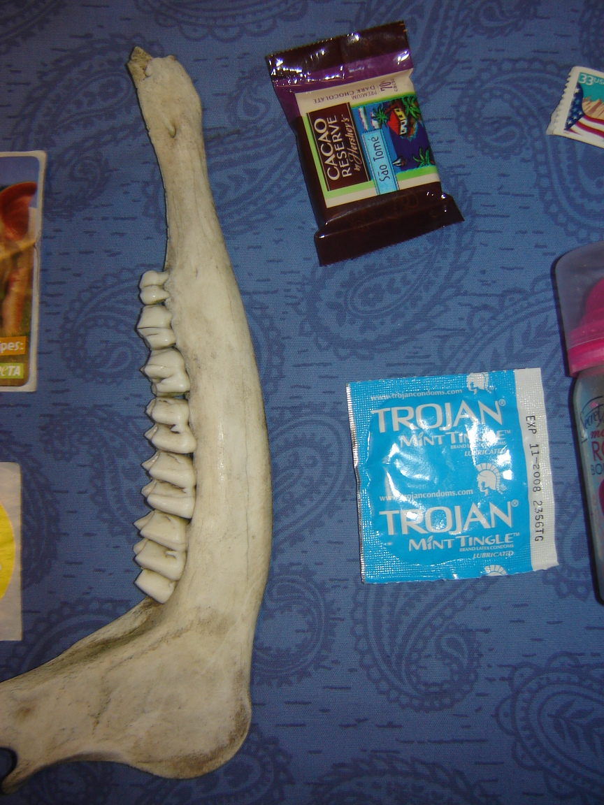 download file ...A Deer's Jawbone, Dark Chocolate Treat, Trojan "Mint Tingle" Condom... (side note: It's funny, because the Mint Tingles were also featured in the Shopping Commentator task. This could be a running theme!) |