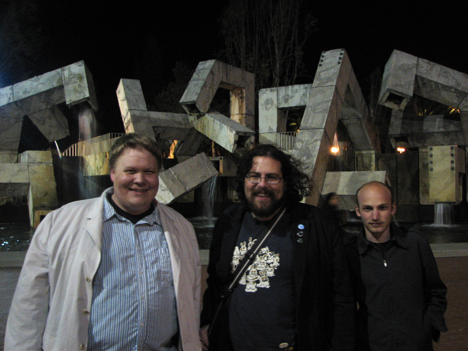 download file The candidate makes an appearance in San Francisco. To affirm his grounding in the public arts, the candidate met with SF0 notables Jason 7au and SAM LAVIGNE! (photo by no less than Ian Kizu Blair who the candidate describes as "a terrific hugger, just a great human being") As the people in the photo can attest, Burn Unit was, for that night at least The Most Popular Person in San Francisco. Ask any of them. Ask Lavigne! He said it! |