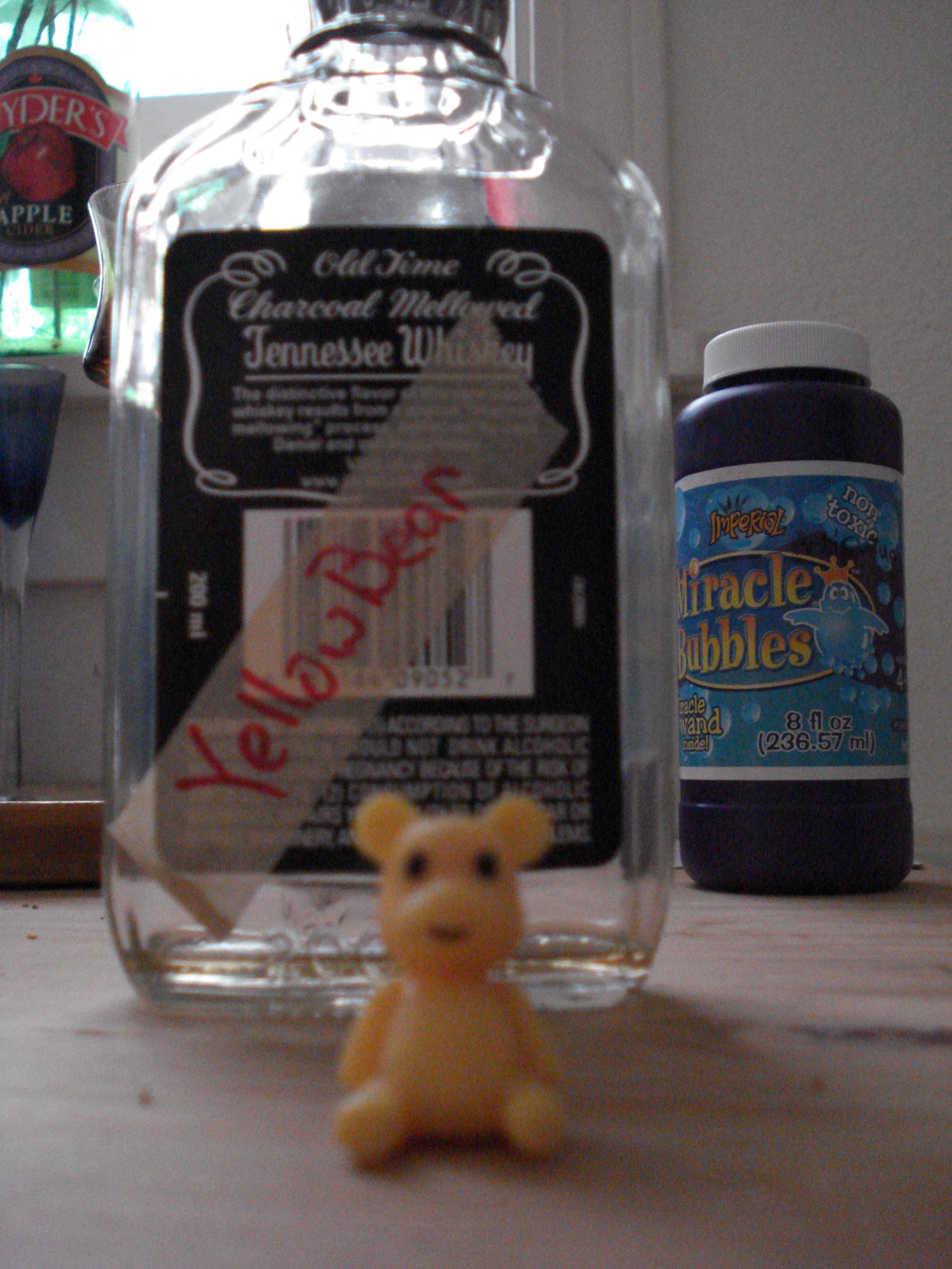 The name of the little guy with the crown on the Miracle Bubbles is Articulus (He is king of the bubble people!) I named him myself, he is very friendly and makes a strong bubble mix.