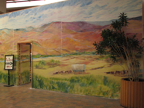 Part of the empty mall is blocked off. This wall allows you to pass through to get to the interior entrance to the flea market, but that's it.