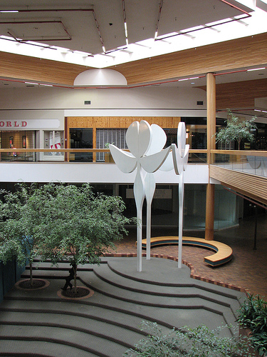 The only person hanging out in this seating area is a wood silhouette.