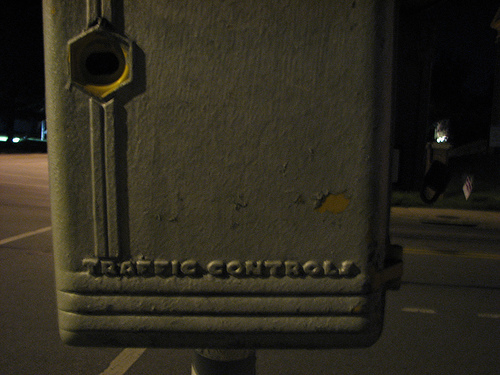 I never noticed the faintly Art Deco-ish style of the control box of our corner's old traffic signals.