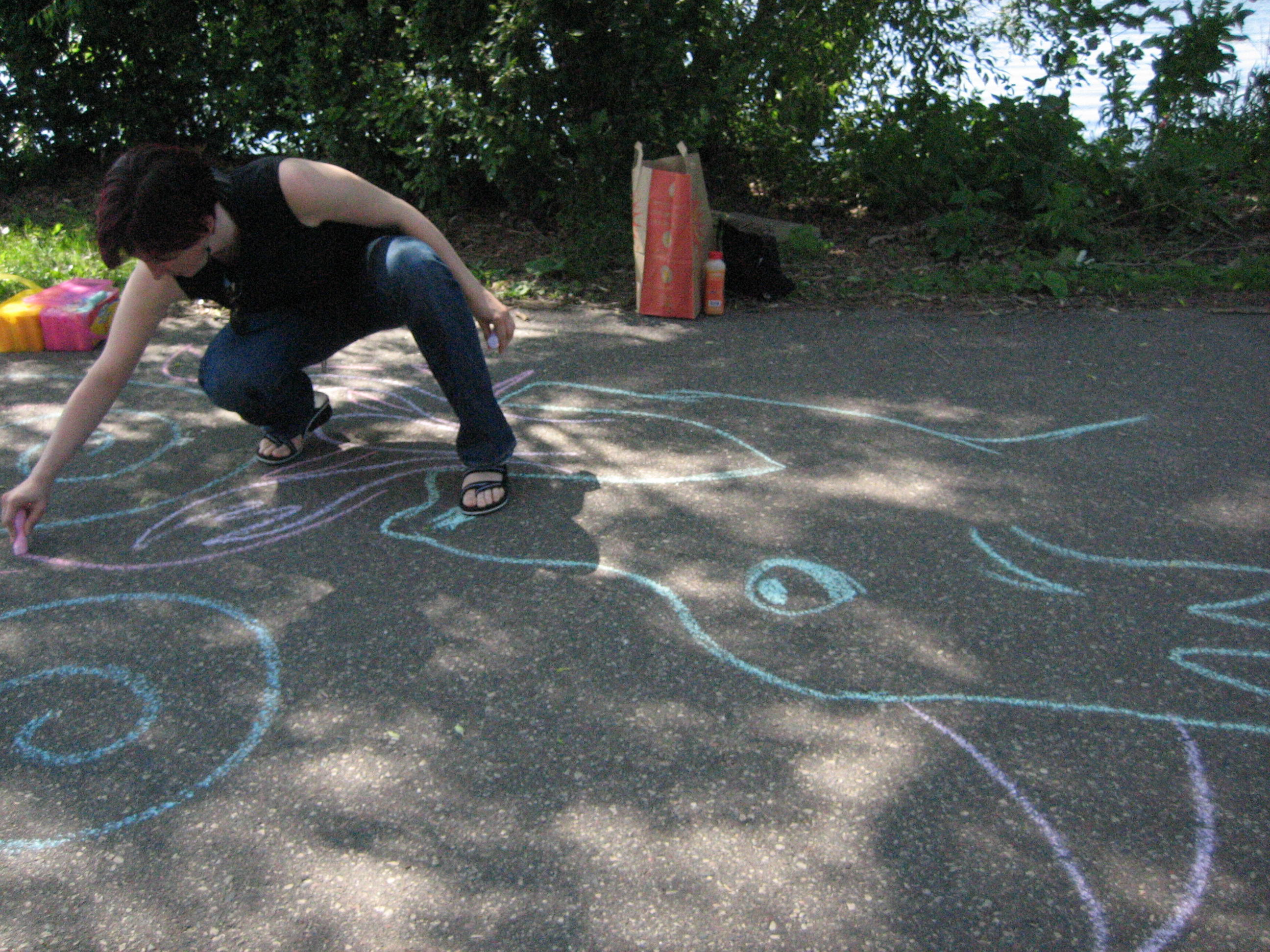 The path ended up with a dragon, fish, UFO, cat, man with a hat, and other recognizable figures among whatever other shapes and lines came to mind.