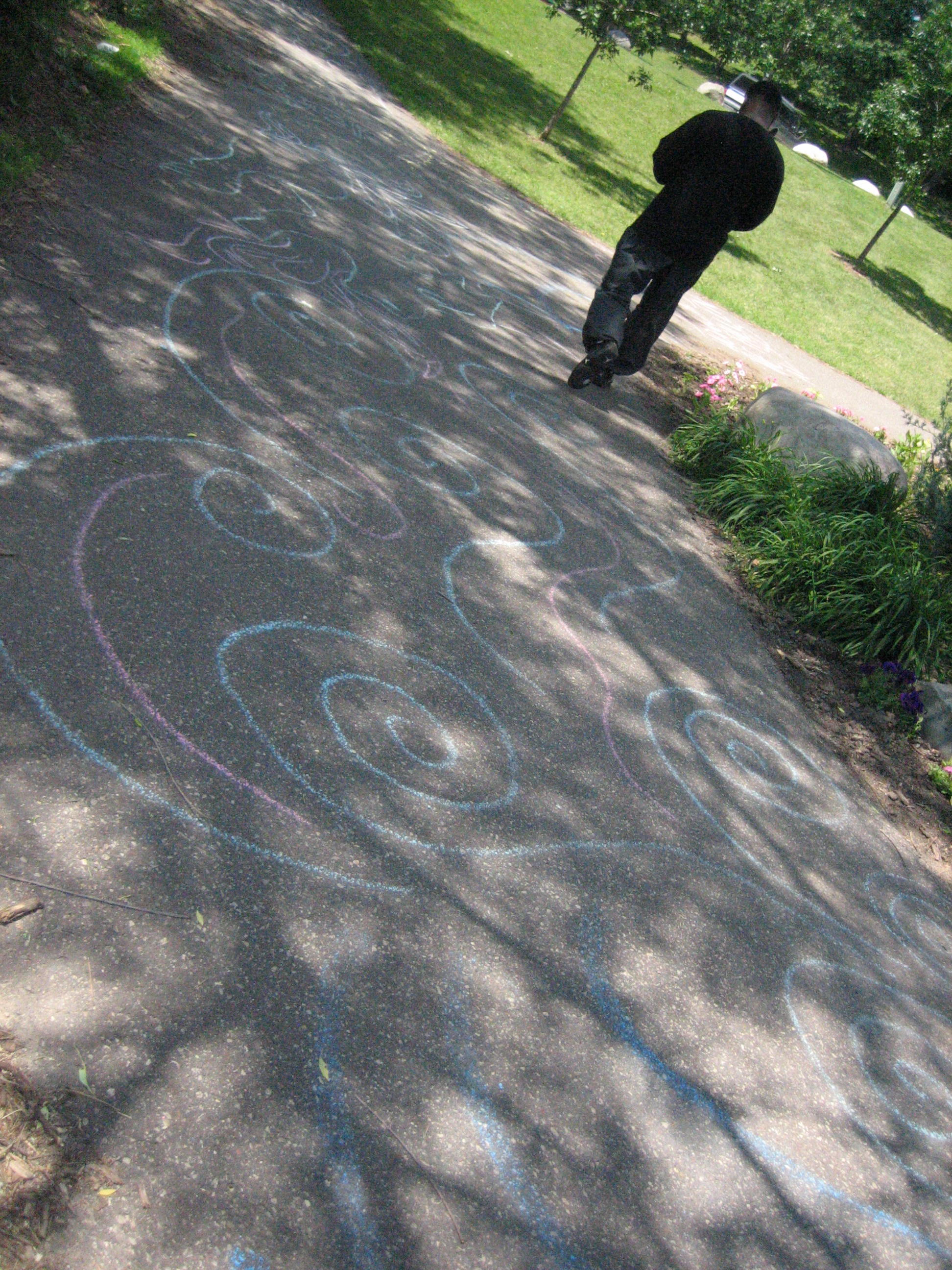 A man begins walking from where we started to draw.