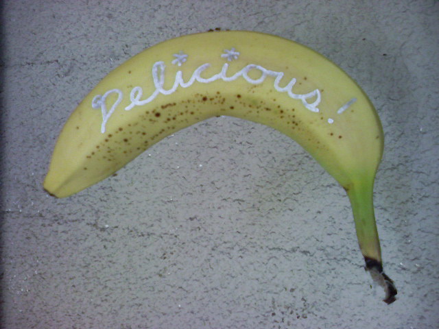 We've definitely got some bruising now. The process of respiration has exhausted the banana's starches, and it's now loaded with sugar for - you got it, the fruit flies!