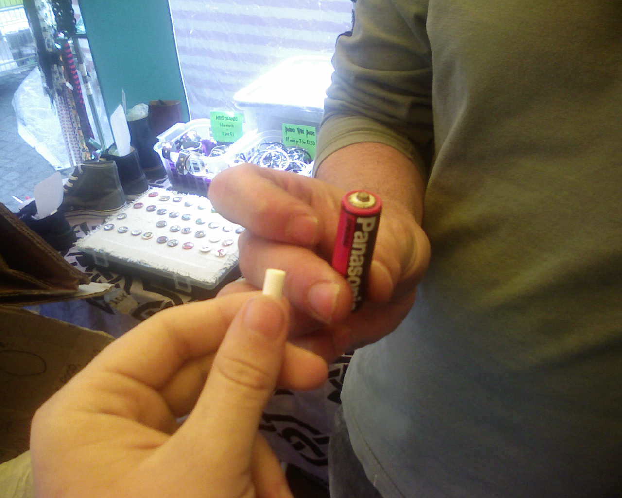 Team 2 traded a depleted AA battery for a cigarette filter