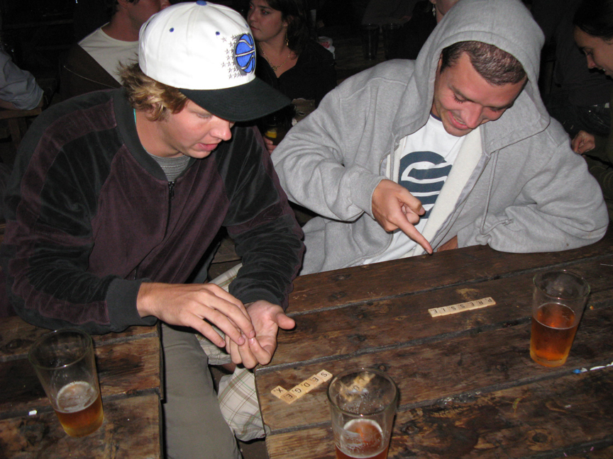 During the beta round, our strangers made no real words or cross words, nor followed any of the rules. But they had fun dropping tiles in the dirt and spilling beer into my purse...