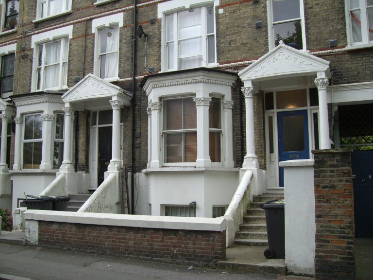 My house and my neighbour's house. Tonight's the night we have to put out our trash for collection, so the bins will be full. And it gives me a flimsy excuse to be loitering around the trash.