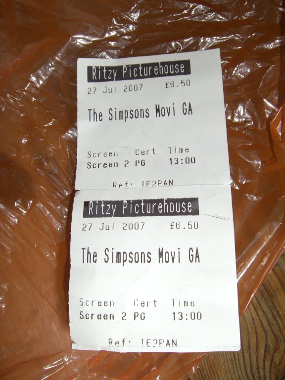 Two tickets for The Simpsons. You Americans reading this will probably be surprised that it's only just been released over here.