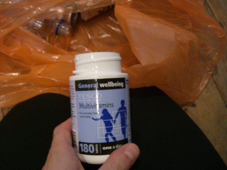Multivitamins. This, and the fact that my neighbour had taken the sports supplement out of the Guardian, suggests that he is health-conscious. But...