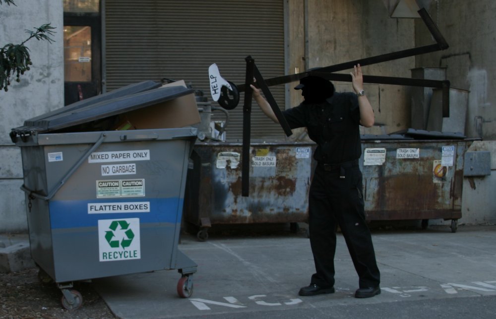 download file Time for some real peril. These guys are recyclable, and you better believe they know it. (We've scrubbed Stabino's face, lest he decide to commit real crimes in the future and document them here - this is the only digital image manipulation in this series of images.) |