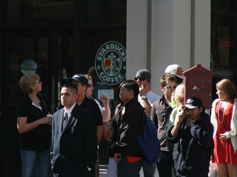 download file In the event a corporate entity gets out of control and begins a market clustering campaign that threatens to eradicate local businesses and the tattered remnants of regional urban diversity, just press the button. [One of the four Starbucks within one block of Union Square.] |