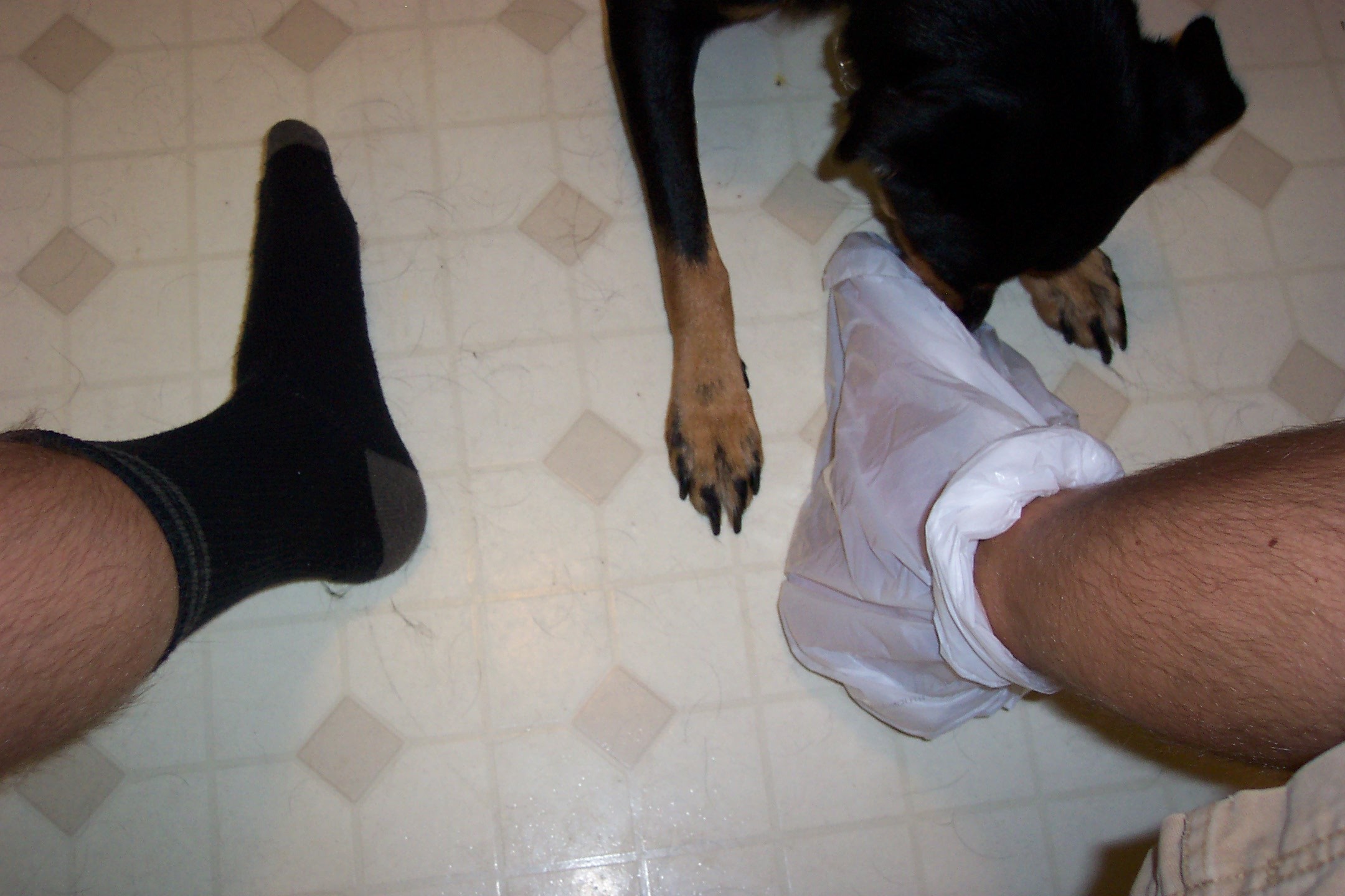 Dare #2 - So mismatched that halfway through the day the pink sock became a plastic sack sock. Now *that's* maximally mismatched.