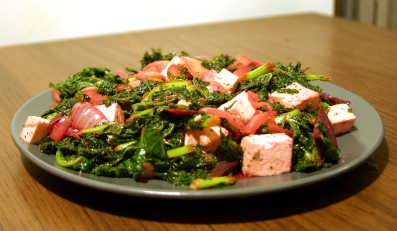A staggering feat of magic. The volume of kale on this plate was 10 times as big before cooking. Honest! You should've seen it before. Man, that was some awesome shrinking!