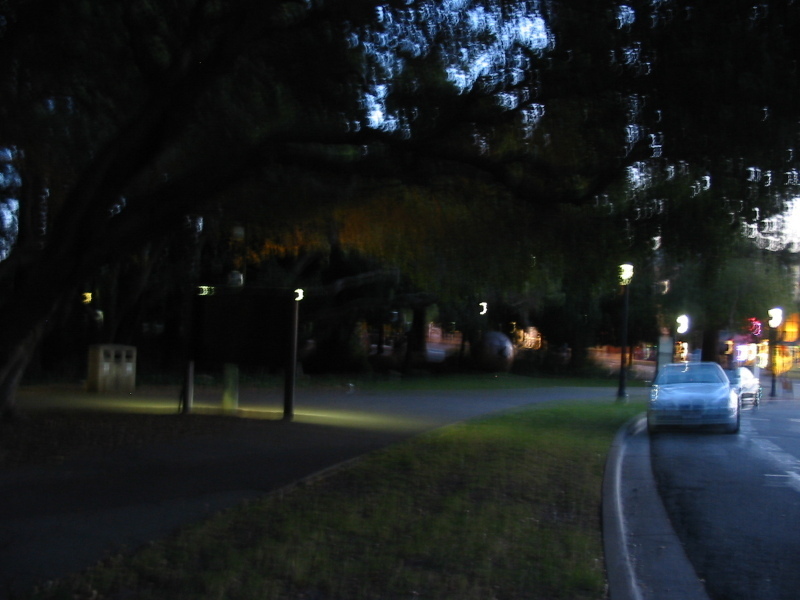 I can hear traffic - must be getting close to the end of the campus. I had no idea it was this dark out.