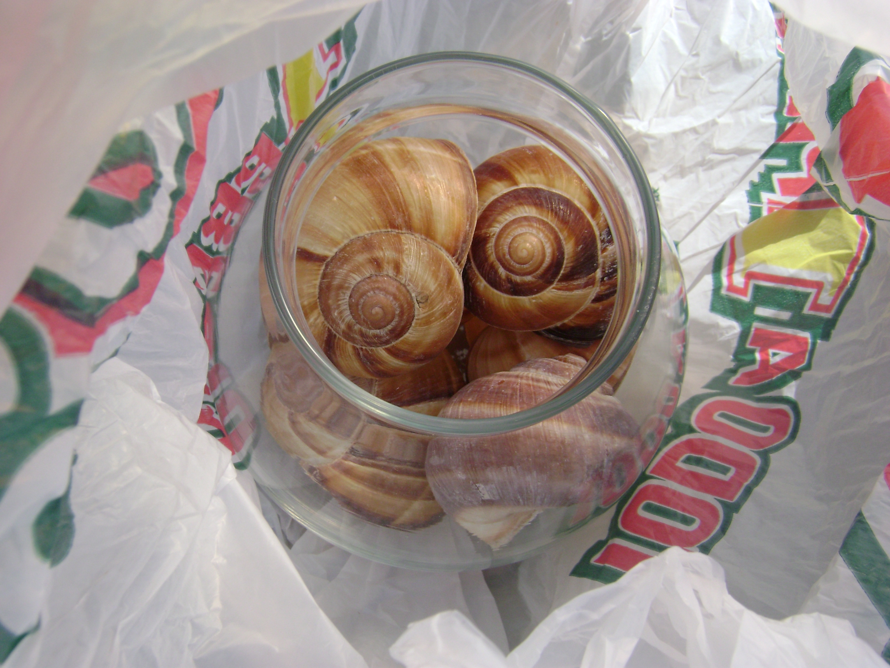 This is the fishbowl filled with snail shells.