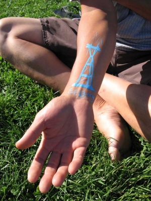 These come off only with a good scrub with soap and water. They were advertising sfØ all day long.