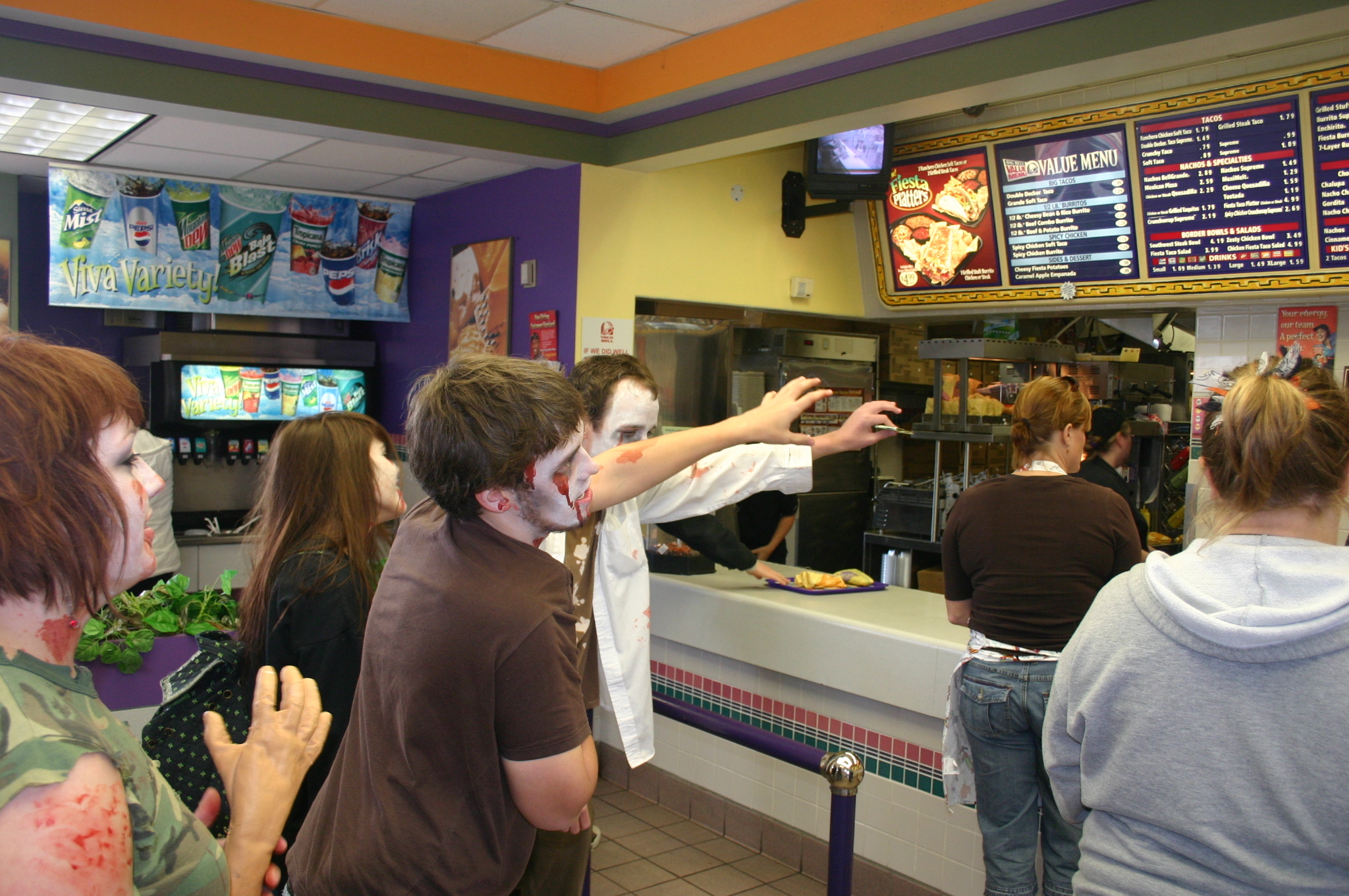 The people in line are trying not to look at us. IF WE IGNORE THEM THEY WILL GO AWAY!!!