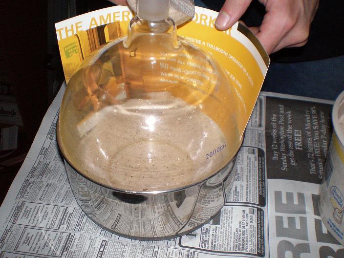 The junk mail helps direct sand, which conducts heat, in there around the flask without getting all over the table.
