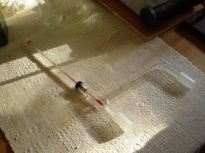The adapter, gasket, and thermometer, now called the still head, assembled.