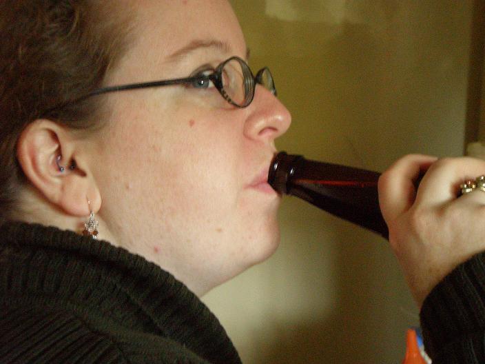 Duckmonster tastes the beer, just to prove it's OK. ("Have you taken the picture yet? This beer isn't all that good.")