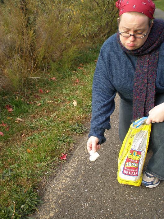 Duckmonster sadly pretends to feed a duck, practicing for if she can find any.