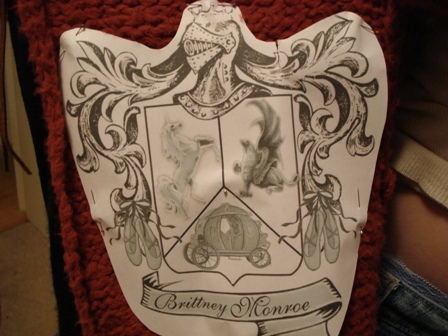 download file As keeping with the original idea for the task here is my coat of arms close up view...notice the dance slippers? The Griffen is also a part of my families coat of arms. The Monroe clan of Scotland. I love Cinderella, hence the carriage. The Unicorn is because I have loved this magnificent creature all my life, and the crown on the Knights helm just renstates the fact that I long to be a princess! |
